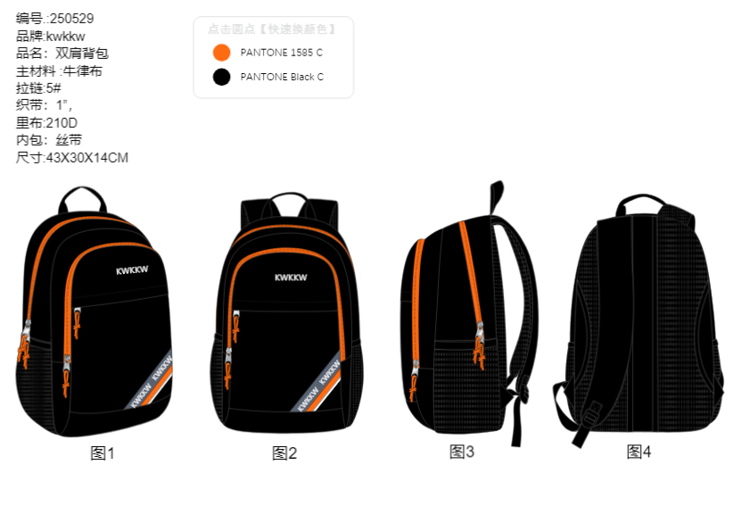 我将根据您的需求设计草图。包括前视图、后视图和侧视图,画好后发给你看一下确认,在进行下一步工作。 我们标准设计图,包含所有规格、内部视图、颜色和面料以及工艺信息等。 制作完成后,我们会打包源文件AI,PDF,jpg图稿给您,供版房制板及生产需要。