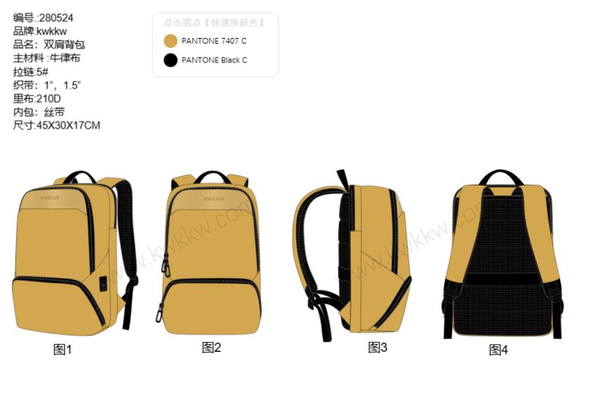 我将根据您的需求设计草图。包括前视图、后视图和侧视图,画好后发给你看一下确认,在进行下一步工作。 我们标准设计图,包含所有规格、内部视图、颜色和面料以及工艺信息等。 制作完成后,我们会打包源文件AI,PDF,jpg图稿给您,供版房制板及生产需要。