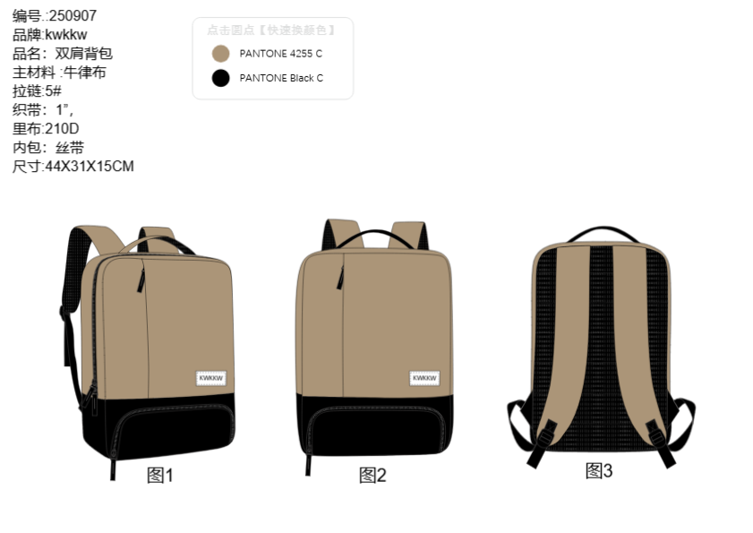 我将根据您的需求设计草图。包括前视图、后视图和侧视图,画好后发给你看一下确认,在进行下一步工作。 我们标准设计图,包含所有规格、内部视图、颜色和面料以及工艺信息等。 制作完成后,我们会打包源文件AI,PDF,jpg图稿给您,供版房制板及生产需要。